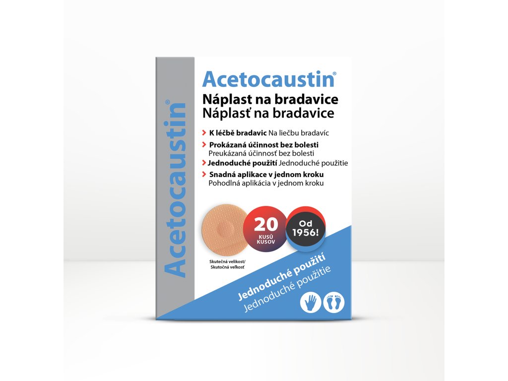 Acetocaustin Náplast na bradavice je zdravotnický prostředek k léčbě běžných bradavic.